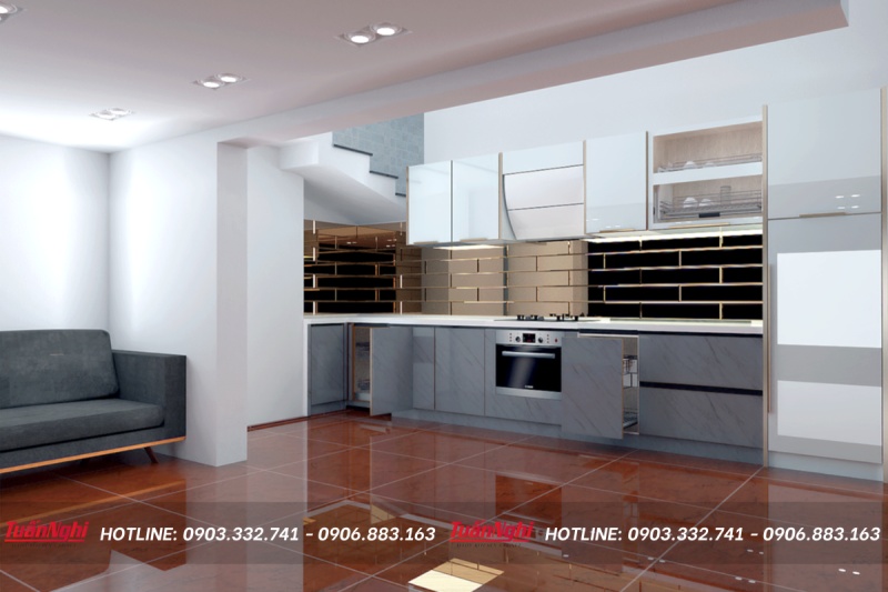 Tủ bếp chữ i hợp kim nhôm đơn giản TB95 được xếp vào những mẫu tủ cao cấp tại Tuấn Nghi với những đặc điểm nổi bật: