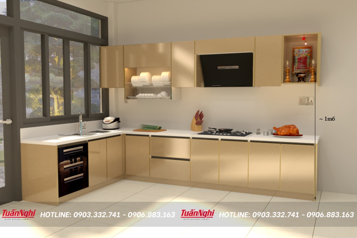 Tủ bếp chữ L hợp kim nhôm có bàn thờ TB54 thuộc hệ tủ cao cấp tại Tuấn Nghi với những tính năng vượt trội sau: