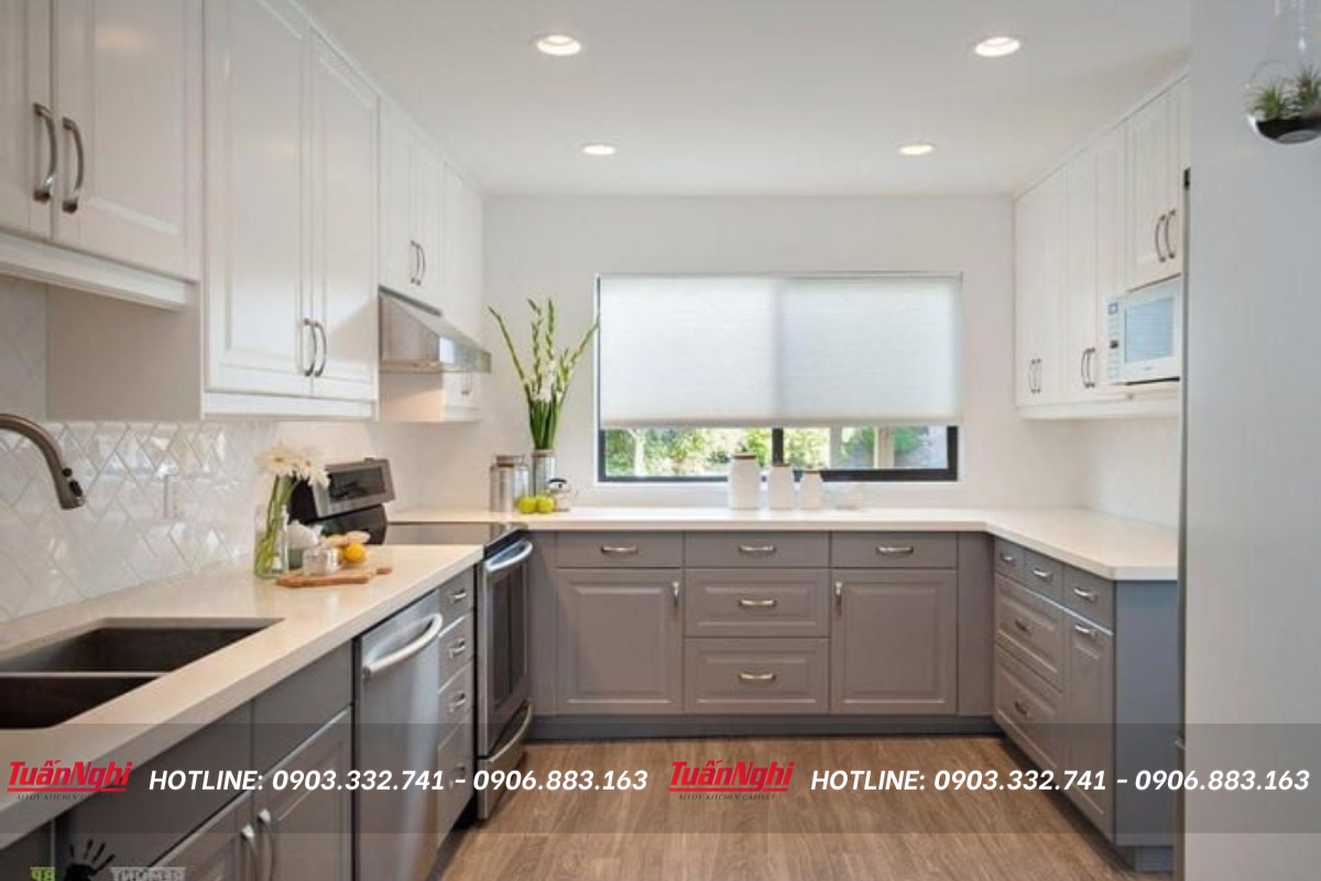 Tủ bếp chữ U hợp kim nhôm TB40 là một trong các mẫu tủ bếp đẹp được nhiều khách hàng lựa chọn bởi các ưu điểm: